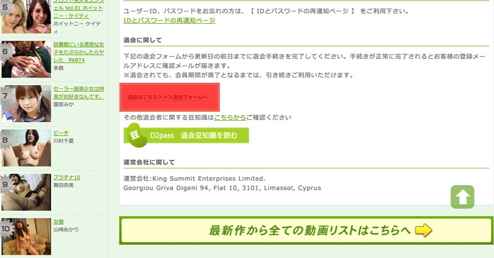1.入会ページ(新しいタブで開きます)へ行き、下にスクロール。 2.赤枠の退会フォームをクリックして、必要事項を入力するだけです。 公式ページ一覧 TOPページ パイパン カテゴリー 痴漢 カテゴリー 作品一覧 女優一覧 よくある質問 入会(退会)ページ